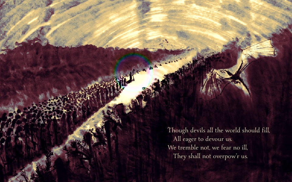 Accompanied by these powerful illustrations, sing Luther's famous hymn, based upon Psalm 46. For though sin, death, and the devil would torment us, Christ has won forgiveness, life, and salvation on our behalf. This is the Church's confidence, joy, and comfort.