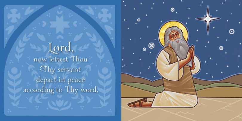 Rejoice with Simeon to see the promises of God fulfilled in the incarnate Christ. Simeon's canticle, the Nunc Dimittis, is often sung after communicants behold their Lord in the Sacrament.