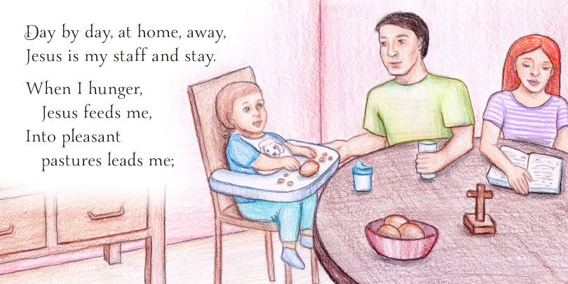 Comfort children while singing this well-known paraphrase of the 23rd Psalm. Little ones will see how Jesus calls them by their name in baptism and how He uses parents to care for them while at home and away.