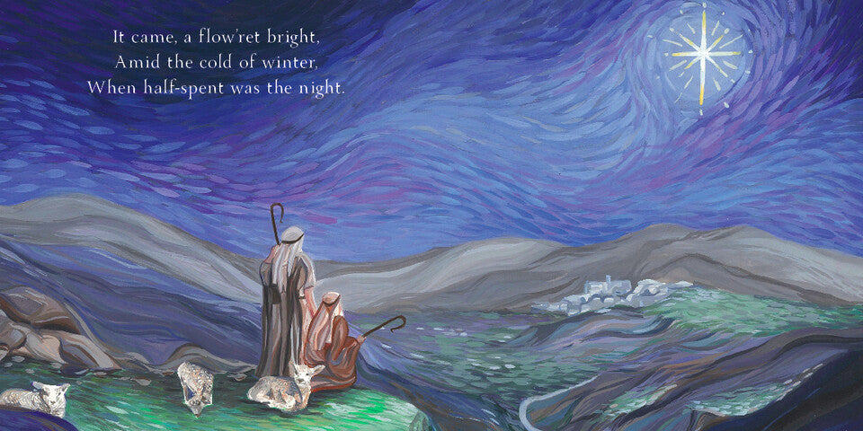 From illustrations inspired by Van Gogh’s Starry Night to a storyline reminiscent of Bunyan’s Pilgrim’s Progress, the soft artwork accompanying both hymns is sure to invite all readers.