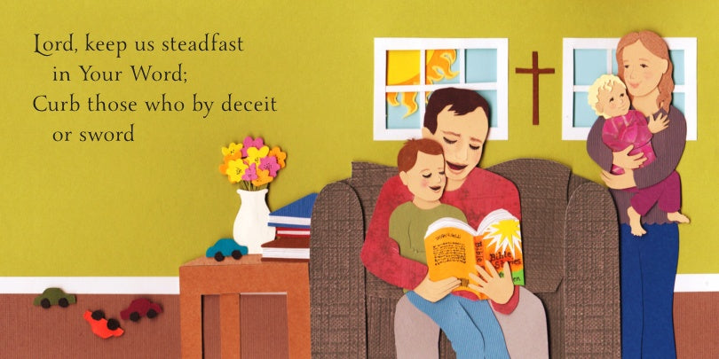 Teach little ones this little prayer, which Luther called a children's hymn. On each page, the Triune God keeps this family faithful to His Word as they conduct home devotions, attend church, and share the Gospel.